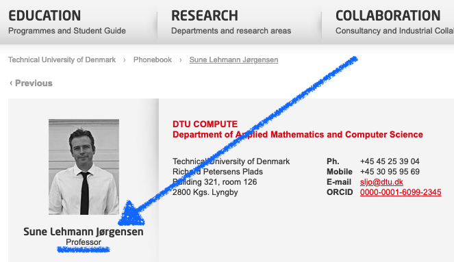 Starting march 1st this year, I was promoted to full professor at DTU! Pretty exciting. And if you want proof, take a look at my updated profile page (conveniently screen-shot and marked up below).