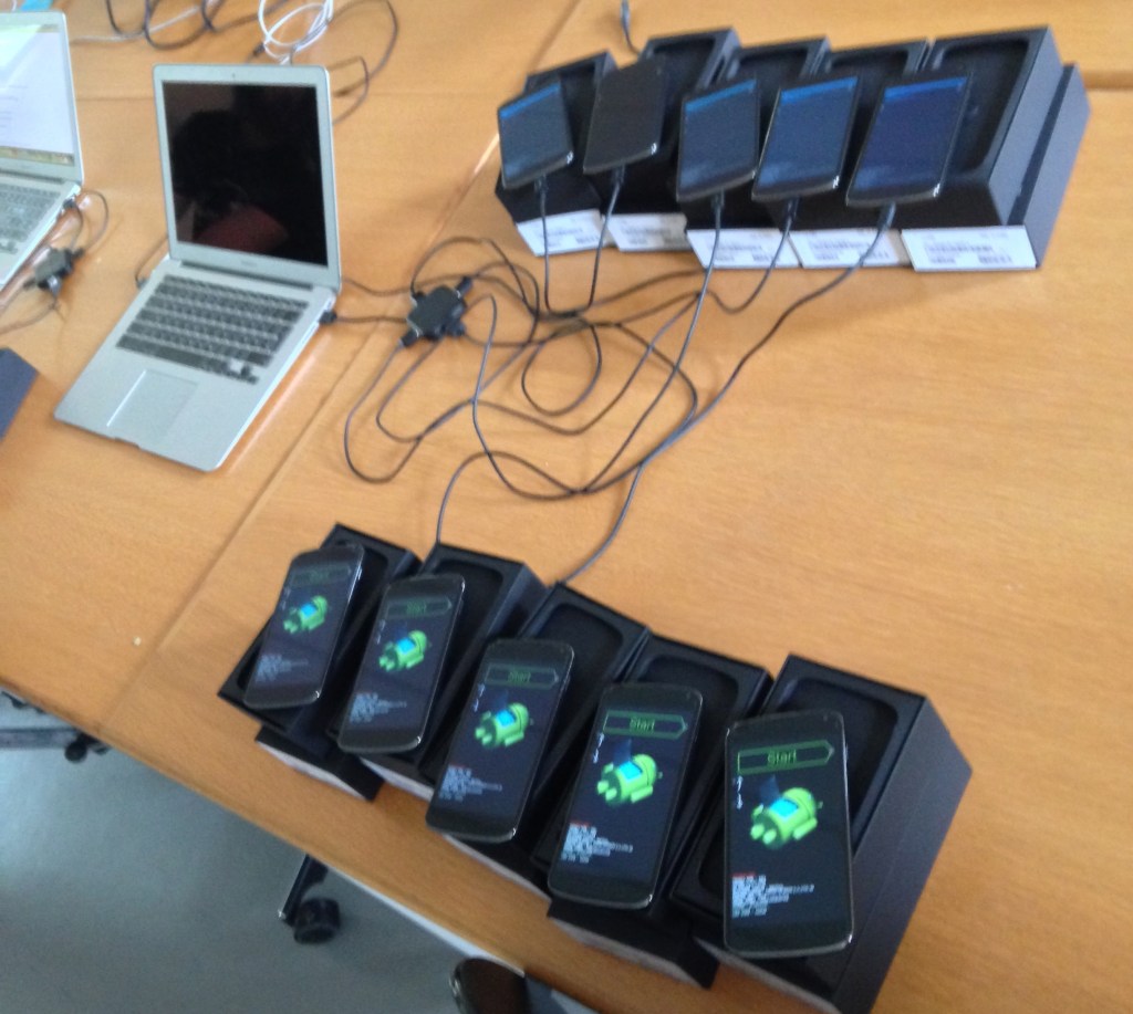 Figure 1. Flashing custom software on the smartphones used for the CNS study back in 2013. We did that for 1000 phones!