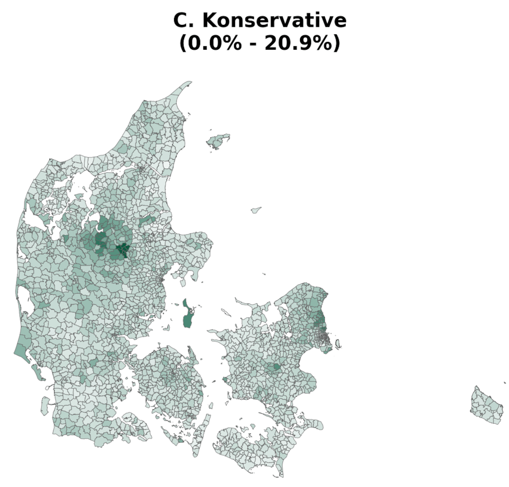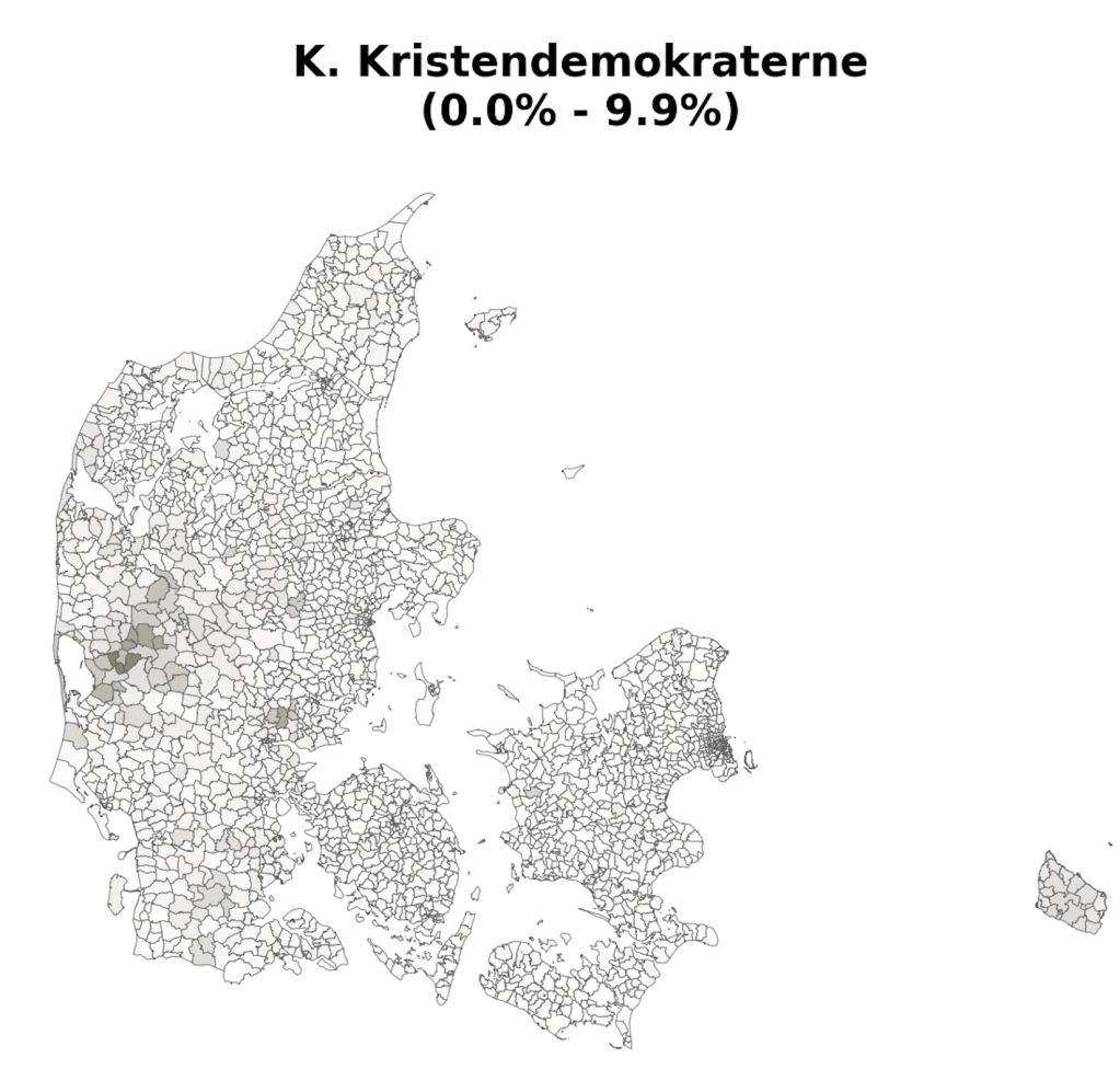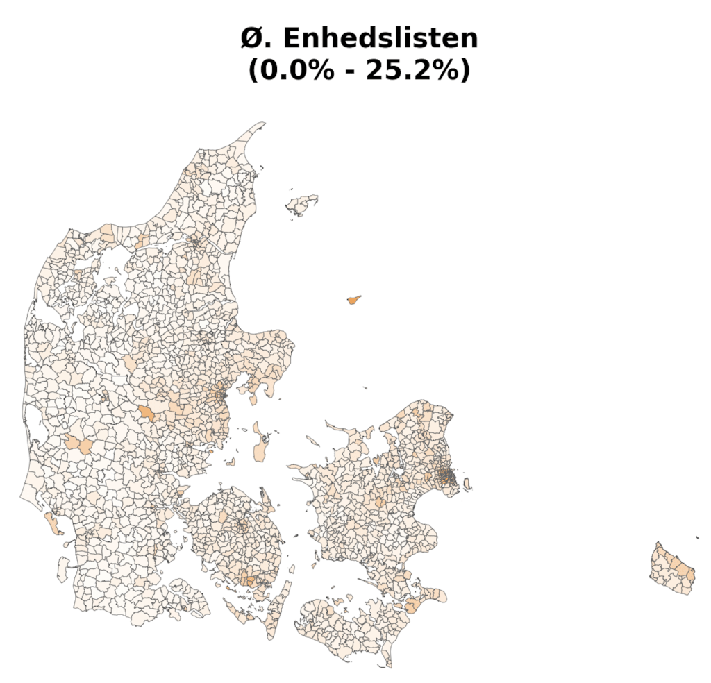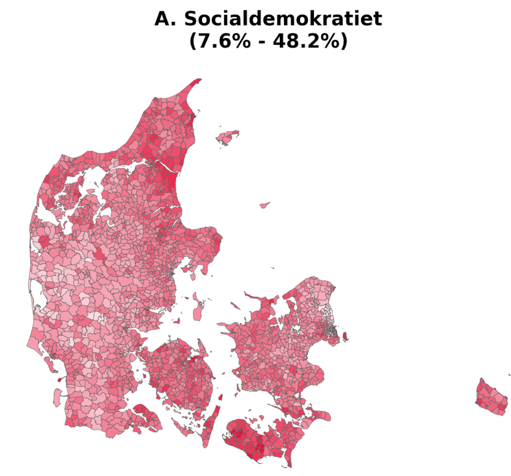 Hi-resolution voting maps of Denmark