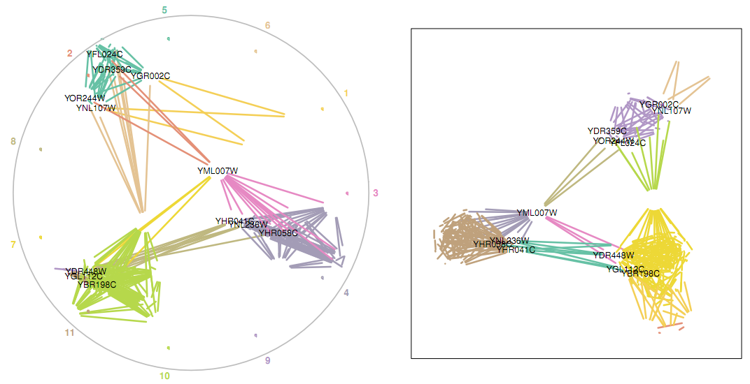 And the spatial network layout options are great as well; the various community visualizations are simple, elegant, and very pretty: